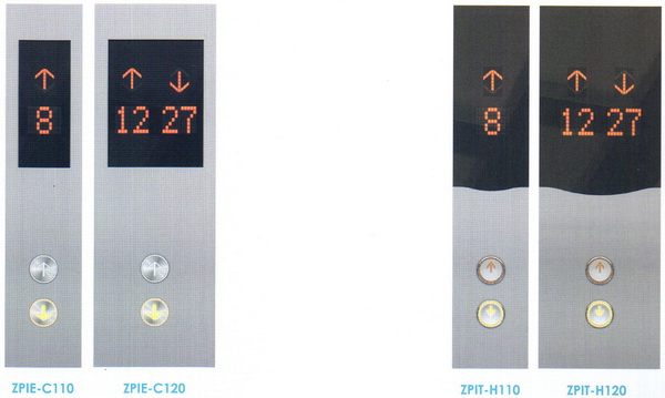 | ZPIT-F110 | Metal matted round button(mix Braille) , emitting orange light | LED Dot display | Non-standard, Applicable for wide car | |