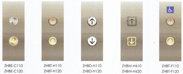 | ZHBT-F110 *2 | Metallic alloy round button with Braille, emitting red orange light | Wheelchair landing indicator | |